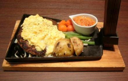 とにかく目玉商品であるハンバーグをいただくことにする。注文する手順があるので、参考のために記しておくと。(1)サイズを決める(200と300グラムと2種類ある)(2)トッピングを決める(1品目は標準でついてくる。総数20種類)(3)ソースを決める(10種類用意されている)こういう具合になる。