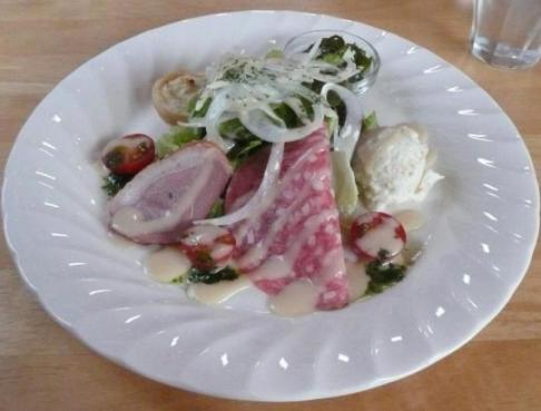 前菜がすばらしい。実にバラエティに富んでいた。鴨の燻製、サラダ、ポテトドーム、マリネ、プチグラタンパイ等々。