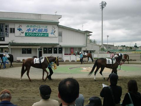 ハートマークの競走馬トレジャースマイルが今日4戦目となるレースに出走しました。休日だったので見に行ってきました。初めて競馬場に行ったので到着時間を間違えてしまいパドックにトレジャースマイルの姿は無し。写真を撮り損ねました。これは第5レースのパドックの様子。第4レースに出走したトレジャースマイルはスタート直後に先頭にたちました。ただし逃げてるというよりただ集団の先頭を走ったまま第4コーナーへ、その後次々に抜かれて5位に沈みました。以前はトレジャースマイルの馬券にはハートのスタンプが押されたらしいがもうやめたらしい。観客席から見た発走ゲート。第5レーススタート2頭で競り合ってゴール!水沢競馬場内にオープンした宝(トレジャー)神社。その内部。トレジャースマイルの模型もあります。次回はちゃんと本物の写真を撮るぞ!