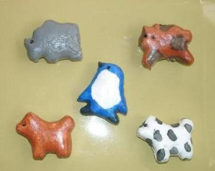 午後から息子の工作を手伝いました。年末に型へつめて乾燥させておいた紙粘土に色を塗り、裏へ磁石を貼って、ニスを塗りました。動物マグネットです。何の動物かわかるでしょうか?