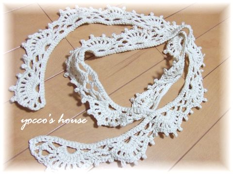 今日の午後、明日のイベント会場へ、搬入してきました!テーブルなどは、会場のものを使わせていただくということで、事前にサイズなどを知らされてはいたものの、やっぱり、実際に会場で並べてみるとシュミレーションとは違いますね・・・思いのほか、出品する点数が増えたので、レイアウトをかなり変更しました。それに加えて、ディスプレイ用のカゴやイーゼルを忘れて・・・明日、ちょっと早めに行って調整してきます!で、今日、最後の悪あがきにと、ラリエットを編みました。ラリエットっていうのかなぁ。2時間ちょっとで編めたので、今晩もう1~2本編もうと思っています。******イベントに参加します******ナチュラルマルシェ Vol.3 5月29日(土) 10:00-15:00刈谷市半城土町掛貝45 ミントハウス にて。yocco's houseのブースは、一番奥の真ん中辺りです♪テンパってると思いますが、声をかけてくださるとウレシイです。++出品予定++ストール9点・ショール2点・バッグ11点・帽子1点ばねポーチ2点・がま口3点・モチーフ10点・ネックレス11点ヘアゴム26点・シュシュ14点・バッグチャーム6点ラリエット4点・ブレスレット4点・一輪挿し4点★先着100名様にはミニプレゼントがあります★皆様のご来場をお待ちしております。*********************
