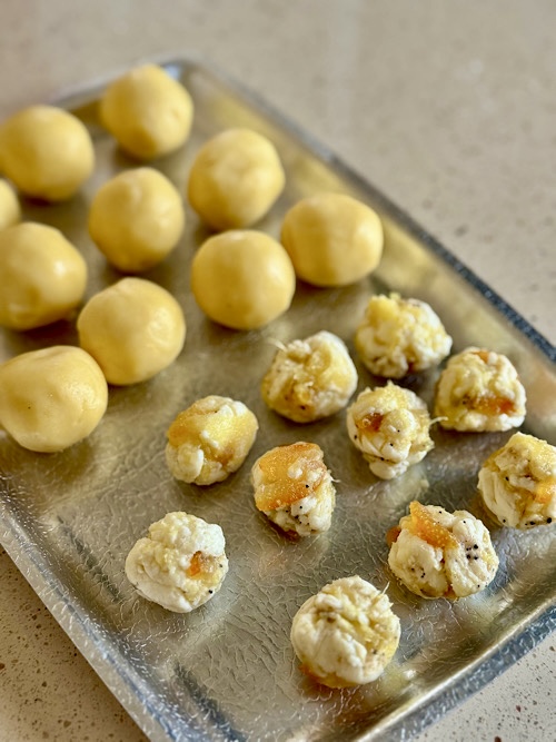 インスタで見つけたレシピで焼いてみました。富澤商店さんのオフィシャルクリエーターという肩書をお持ちの、けいちょんさんのレシピだから間違いない。けいちょんさんは熊本の方で、このお菓子は割とお菓子屋さんで売っているらしく、元々は宮崎県のお菓子かなと。ワタシは初めて知りました。でも、これはワタシ好みのお菓子だとピンときました💡中にクリームチーズを入れるのですが、先日の失敗作の米粉のスコーンに挟んだクリチと焼き芋と甘夏のマーマレードの残骸を挟む事にしました。これってリサイクル?エコかな??ちなみに、米粉のスコーンは冷蔵庫へ入れると余計に固くなってしまいました💦お米って冷蔵庫へ入れるとパサパサになるので、米粉も同じ??(米粉の事はよく分かっていません)相変わらず包餡は大好きな作業です。とても包みやすい生地でした艶出しで牛乳を塗ろうと思っていたのに忘れましたが、可愛いクッキー饅頭が焼き上がりました。中身は10g、クッキー生地が23gほどで、可愛いサイズなので食べても罪悪感が少ないです。焼き立ての冷めたては、クッキー部分がサクサクで、中がしっとり。お芋やマーマレードが入っているし、めちゃくちゃ好きな味です。次の日には少しだけしっとりですが、それはそれで美味しいです。これ、中身の工夫次第で色々楽しめそうですね。(もう工夫していますが💦)インスタのKeicyon.megu にレシピがあります。けいちょんさん、ありがとうございました😊