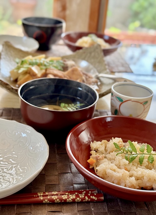 タケノコを使って、簡単なランチを作りました。炊き込みご飯、お吸い物、厚揚げと牛肉の炊き合わせ。厚揚げとタケノコだけだと、ちょっと寂しいから、牛肉の薄切りも入れてみました。タケノコは多めに炊いたので、明日はそれを天ぷらにします。お吸い物のタケノコは極薄切に切りました。豪華な食卓ではありませんが、春の恵みを頂く幸せ。若い人には物足りないでしょうが、シニア夫婦にはちょうどいい感じです。