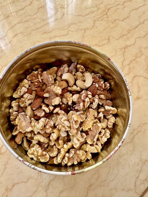 缶の中にはミックスナッツ計ると500g位。最近はあまり食べなくなってしまい、ちょっと美味しくしようかと、キャラメリゼしてみました。アーモンドは上手く出来るのですが、カシューナッツは焦げそうになり、大半を占めるクルミは糖化するだけでそれ以上はジャリと感のまま。これ以上火に掛けたままだと焦げそうなので、有塩バターを少し入れてお終い。残り物みたいになっていたナッツですが、コーヒーを淹れて食べると手が止まらない。夫と困ったなぁと言いながら、ついつい食べ続けてしまう怖ろしい食べ物。余計な事をしてしまったな、ワタシ。。。💦