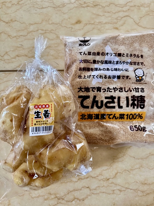 コストコで買った生姜でペーストを作りました。これは、無くなったら作っています。材料は、生姜と同量のお砂糖だけです。ピーラーで皮を剥いて、スライスした生姜とお砂糖を鍋に入れてしばらく放置。砂糖がすっかり溶けて、生姜からエキスが出ている状態です。ここにグローブとカルダモンの粒とシナモンスティックを入れて圧力鍋で10分加圧。ピンが下がるまで放置。入れたスパイスを回収。取り残しのないように入れる時に何粒入れたか数えて入れています。ここで、シロップを炭酸水で割ってジンジャーエールにしたり、生姜だけ少し取り分けて佃煮風に作ったり。生姜とシロップはFPかバイタミックスに掛けると出来上がりです。ジンジャーシロップ用にシロップをたくさん取り分けたい時は、生姜が多めなのでバイタミックスよりFPの方が回しやすいです。今回はバイタミックスに掛けたので、滑らかに出来上がりました。500gの生姜でこれだけ出来ました。生姜のペーストは作り置きしていたら本当に便利なんです。お料理は勿論ですが、豆乳に入れて飲んだり。ホットでもアイスでも美味しいですし、餡子と混ぜたり、バターと混ぜたり、アイデア次第で色んな使い方が出来ます。今日は茄子を蒸したので、中華風のソースに入れてみました。少しだけ作った佃煮風。お醤油を少し入れて水分を飛ばしただけです。生姜で作るペーストですが、圧力鍋のお陰で簡単に出来ます。冷蔵庫にあると安心なんです