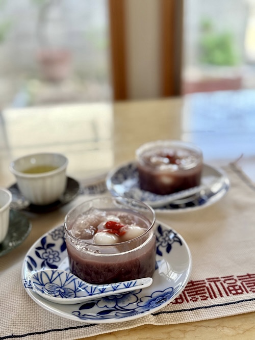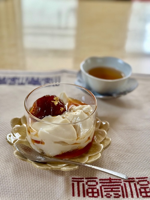 今日は朝から冷え込みはなく、生暖かい空気の我が家地方です。冬物を何点かクリーニングに出しました。セーターは明日から順にホームクリーニングする予定です。GWに衣替えをして、クローゼットやタンスの中に空気を通します。いよいよ夏に向かって始動ですね。夏は苦手なので嬉しくないですが。。。💦大納言小豆を炊いたので、餡を煮詰める前に柔らかい餡を取り、豆花のトッピングにしてみました。今回、甘みはいつものキビ砂糖の代わりに米飴を使いました。あっさりした甘さです。トッピングは、大納言小豆、マンゴー、タピオカ、クコです。マンゴーはローソンで買った冷凍のをシロップに短時間浸けたもの。以前は洋菓子、特に焼き菓子が好きでしたが、最近では全く食べたいと思わなくなって、何となく寂しいです。中華菓子なら食べたいのですが。。。何故??実は、昨夜もう一度太陽餅にチャレンジしてみたのです。前回よりマシになりましたが、まだ漏れています。今日は作りませんでしたが、明日のワタシは分からない(笑)