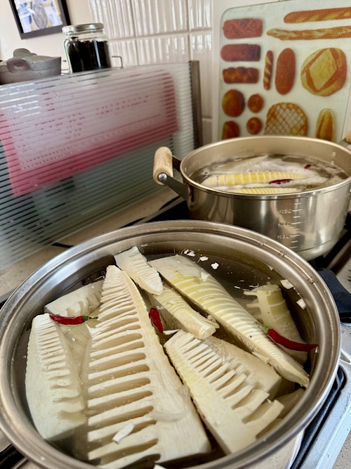 今日も爽やかないいお天気朝から、シューズクローゼットの中を大掃除。収納している所って、気が付くとごちゃごちゃしている。そんな事ないですか?ずーと気になっていたので、綺麗に片付くとホッとしました。その後は、観葉植物のお手入れ。これも普段はお水をあげるだけだったので、中身を出して根や葉をお手入れしました。この段階で疲れてしまった。。。オヤツは豆花こちらは、昨年作った梅の蜂蜜煮をトッピング。完熟梅を蜂蜜で炊いたのを1年保存していました。トロリと美味しくなっていますが、豆花と合うかは微妙でした💦やっぱり、粒餡が安定の美味しさです。タケノコ仕事が忙しいです💦お昼に食べた天ぷらが美味しかったので、また明日もする事に。追加で天ぷら用に炊きました。混ぜご飯とすし飯用にも炊きまして、これは小分けして冷凍にします。こちらには、タケノコ、人参、椎茸、油揚げ、ちりめんじゃこを入れています。今から真空パックにします。
