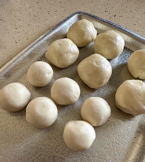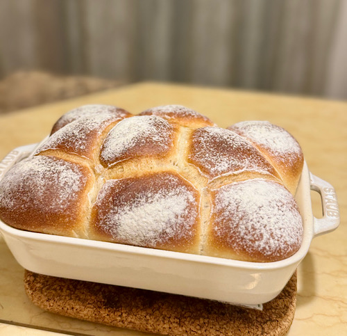 夜捏ねていたパン生地。今回はいつもより発酵温度が高くてもいい生地。ちょうど室内温度が24℃。朝までならこれ以上高くならないし、たぶん朝3時頃に一度目が覚めるので、その時に冷蔵庫へ移そうと考えて寝ました。いつもより早く2時にトイレへ行きたくなり目が覚める。パン生地を見ると、あら~すっかり発酵してヤバイ。そこから慌てて分割してベンチタイム。餡を包んだり大変。実は、粉違いで同じ配合で捏ねていました。こちらは、ハルユタカストレート。これもあんぱんにする予定で春よ恋と食べ比べする予定でしたが、そんな余裕がなくて丸パンに変更。ストウブのレクタンギュラーディッシュに入れて焼きました。フワフワの焼き上がりです。焼き上がったのが早朝4時過で、まだ外は真っ暗。こちらは、春よ恋で捏ねた生地で、大納言小豆を包んであんぱんに。生地より多い位の餡の量ですが、柔らかい生地なので楽々包餡出来ました。実は、10個作っていたのに、ホイロ後に3個を床に落としてしまい、7個に減ってしまいました。3個は中の餡だけ救済して、あとはごめんなさいです。今回は下火を弱めにしたので、底も綺麗に焼けました。大納言小豆ですが、いつものキビ砂糖じゃなく米飴を使いました。とてもあっさりした優しい甘みですが、あんぱんの餡には少し物足りない感じで、甜菜糖を少し足して自分好みの甘さにしましたよ。このあんぱんが大好きで、2つはぺろりと食べられる。食べないけど。中身をアレンジするのもいいけど、あんぱんって誰もが好きですよねこれ、油で揚げてあんドーナツにしたらどうやろ?と、また余計な事を考えています気温がどんどん上がり、今日は夏のような服装。パン生地の発酵に注意が必要になってきました。2時はさすがに勘弁です💦