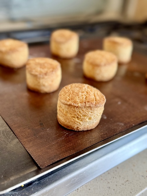 最近のワタシの作るものは、高加水のカンパーニュとスコーンばかり⁉️で、またまたスコーンの登場💦今回は、昔買ったこの本を見て作りました。2005年の本だからもう20年前・・・(そんな年月が経ったのか)この本のレシピは美味しくて、色々作りましたが、スコーンを作ったのは初めてです。焼いたのは、生地を仕込んで4日目。本には、1~4日冷蔵庫で低温発酵させ、1日置くとどっしりした食感、4日置くと軽い食感になると書いてありました。で、4日目に焼いたのですが、冷蔵庫から出して麺棒でたたいて、裏表に麺棒をかけて滑らかにしてセルクルで抜いて焼きますが、冷たいまま焼くのか、復温させてから焼いた方がいいのか分かりません。この日は部屋の温度は低かったので、ホイロから出したカンパーニュが焼けて、オーブンの温度が下がるまで放置してから焼きました。もしかして、型抜きしてすぐに焼いた方が良かったのかも?黒い粒々のはパッションフルーツのジャムです。Yちゃん、ありがとうね。いつも簡易的に作っているスコーンも好きですが、やっぱり時間を掛けただけあり、美味しさのレベルが違うわと、何だか感激これは表面はカリッとしていますが、中はふんわりです。スコーンって色々な作り方があり、味や食感はレシピによって随分変わってきます。ベーキングパウダーで膨らます、それともイースト?天然酵母?など。どれが正解ってないですよね。時間がない時に作る、ポリ袋でフルフリするスコーン、4日も掛けて作るスコーン。。。それぞれ、色んなスコーンがあって楽しいですよね。そもそも、ヌン活のブームからスコーンも流行っている? 阪急のイギリス展のスコーン売り場はいつも賑わっていますね。皆んな、そんなに好きなんだ❤️ワタシは、そろそろ卒業します(笑)