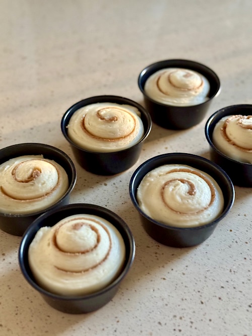 GWの長い休み中に、家の中の片付けが終わったら何をしようかなぁと思っていた所、門間みかさんが折り込み塾と言うオンラインレッスンを募集されていたのて、それに参加してみる事にしました。以前から折り込み塾のオンラインレッスンをされていたのは知っていたのですが、一応デニッシュ生地は作れるからいいかと思って、見ていただけでした。ただ、興味はありましたから、ちょっと覗いてみようかと(笑)元来凝り性なので、デニッシュパンにハマったら太るやんと心配していたのですが、案の定ハマりそうです💦門間みかさんのレシピは一単位が少ない量なので、すごく作りやすいです。バターの量で言えば、今日焼いたシナモンロール6個で75g必要です。失敗ばかりしている太陽餅は6個で80gのバターを使います。ワタシ、この間から失敗ばかりして、意地になって焼いていて6回焼きました。(もっと焼いているかも)それだけで、バターは480g使っています💦デニッシュパンは失敗しても食べれますが、餡が流れ出た太陽餅は食べれません。しばらく太陽餅は封印して、同じバターを使うなら食べれるものを作りたい。アホですから、やっとそう思えました。朝早くからと言うか、真夜中に3回目の折り込みをして、シナモンペーストを塗ってクルクルしたものを糸で切り、型に入れて最終発酵。焼き上がったのが、早朝6時ですから、どれだけ早く起きているか💦家で焼く一番のご褒美は、焼き立ての冷めたての一番美味しい時に食べれる事です。軽くてサクサク、層が一枚づつハラハラと崩れて、本当に美味しい量が少ないので、折り込み作業が楽々です。門間みかさん、やっぱりよう考えてはるなぁと、感心します。ホシノ酵母は、只今絶賛起こし中なので、お手軽なイーストでデニッシュパンを焼いて楽しみます。GWは退屈しないで過ごせそうです