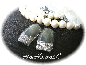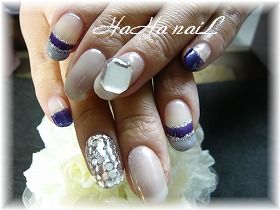 本日のお客様、午前中にお越し下さったIさん新色をお使いになって Iさん考案のデザインです大きなキャンデーストーンが存在感大ネイビーとグレーのコンビがいいですさすが、Iさん今回もオシャレですね~ 今日はどうもありがとうございました~男前の旦那さまによろしくお伝え下さい~ もっとゆっくりお話したかったです