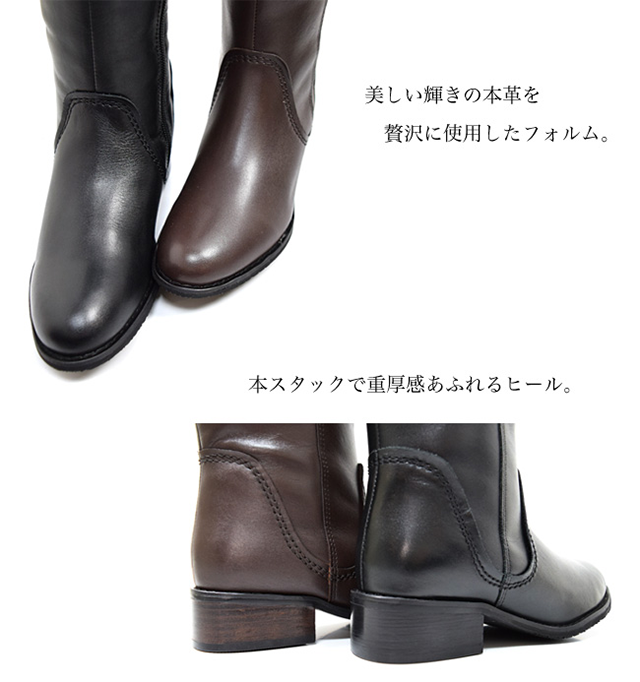 ■上質な本革の艶と本スタックヒールの本格的なジョッキーブーツ。重厚感があって足元がカッコ良く見えて、スタイリッシュに決まる!シンプルなデザインで、スカートやパンツなど色んなコーデを楽しめます。ファスナーも大きく開くので、ブーツインも手軽に出来ます。1足は持っていたい、ロングブーツです。