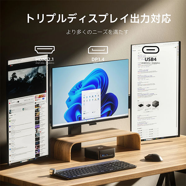▶ 3画面同時出力のMiniPCです!CPU:AMD Ryzen5、16GB メモリと1TB SSDで快適な動作します!