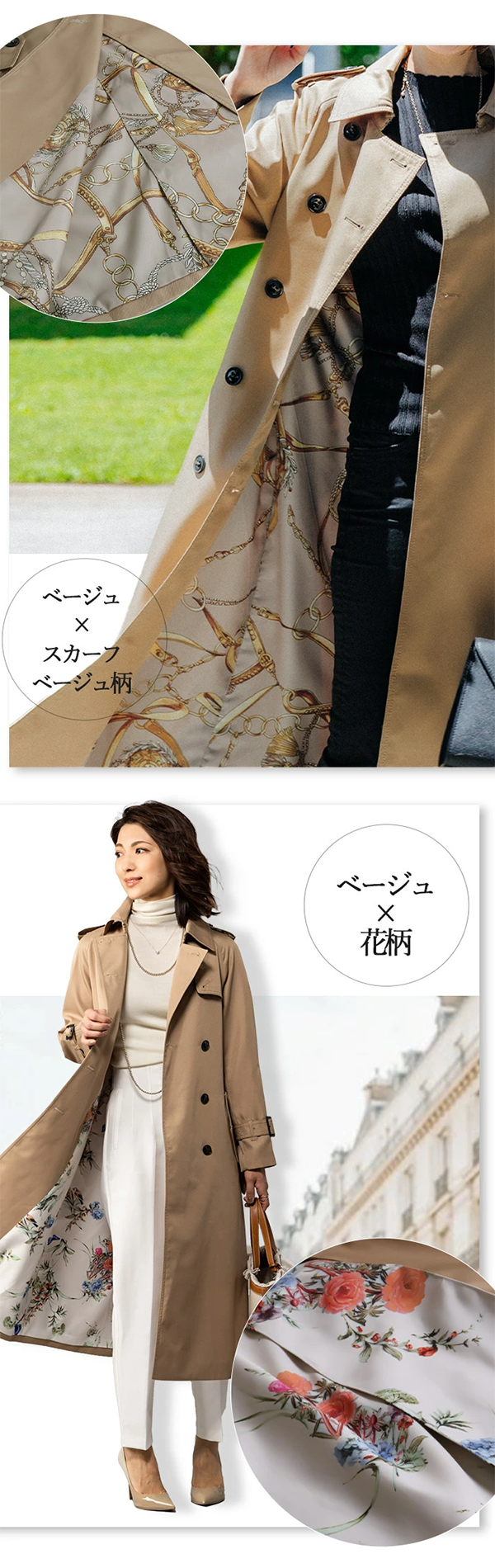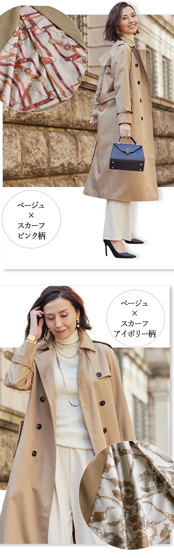 • ベージュ×スカーフピンク柄 ・ベージュ×スカーフアイボリー柄
