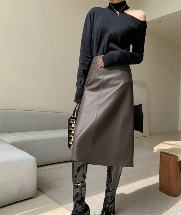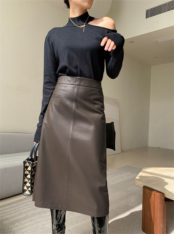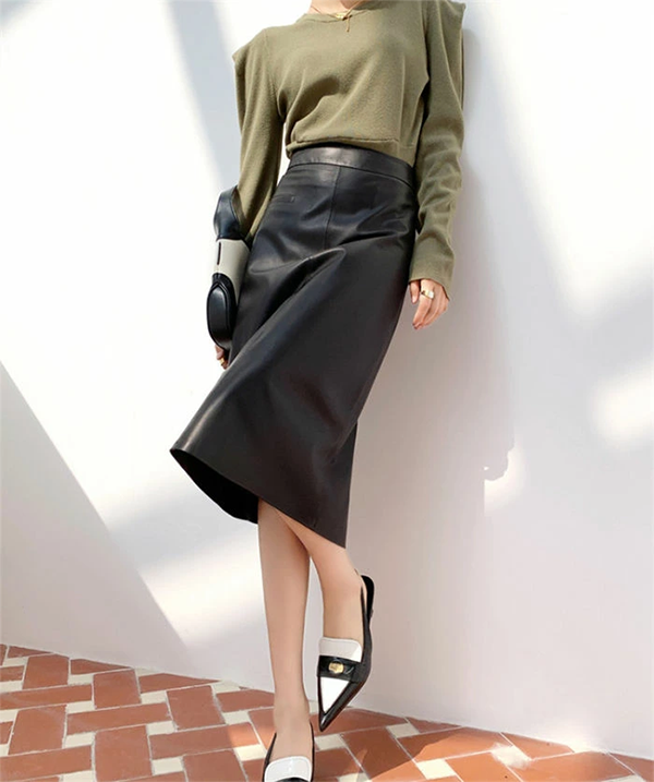 レディース 本革 ラム レザー Aライン タイト スカート 70-73cm丈
