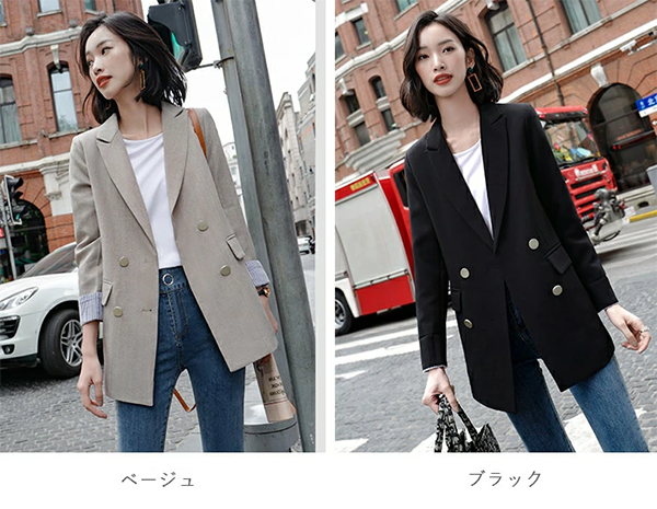 テーラードジャケット レディース ダブルジャケット カジュアル アウター 春 秋 黒 大きいサイズ 3L 4L 通勤服 オフィス シンプル おしゃれ 春新作 20代 30代 40代
