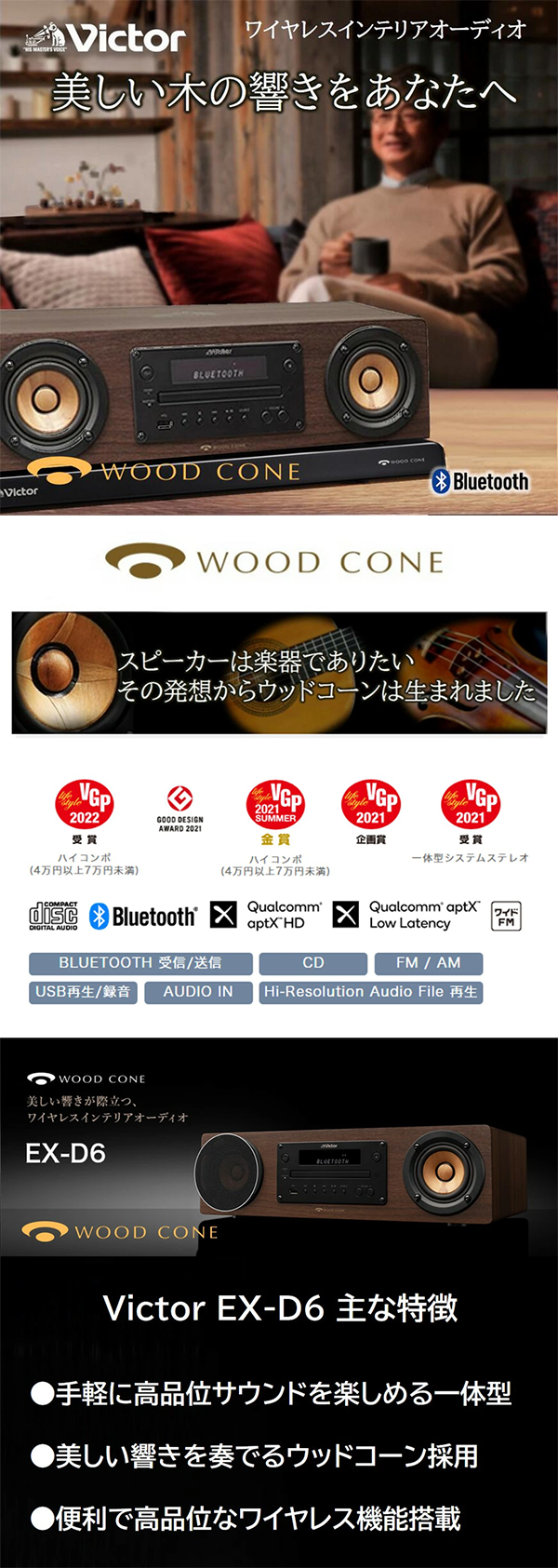 ▶ Amazonのサイト: JVCケンウッド Victor EX-D6SET ミニコンポ EX-D6 & オーディオボード LK-EX10 セット Bluetooth ウッドコーンシリーズ ハイレゾ音源 CD FM/AM USB再生/録音