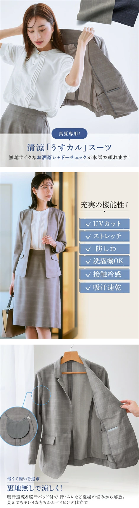 ▶ Amazonのサイト: [ニッセン] スカートスーツ うすカル 夏に嬉しい多機能シャドーチェックスカートスーツ レディース