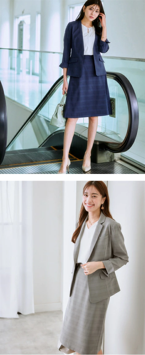 ▶ 楽天市場のサイト: レディース 夏スーツ ノーカラー/テーラードジャケット タイト/フレアスカート Nissen
