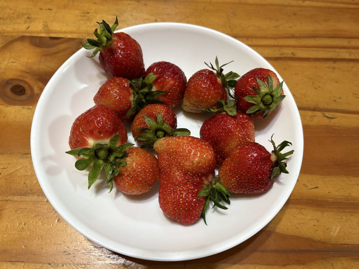 そして、喫茶・ちぱしりの篠塚さんご夫婦に分けていただいたイチゴの苗から毎年のように増やして作った我が家のイチゴです。