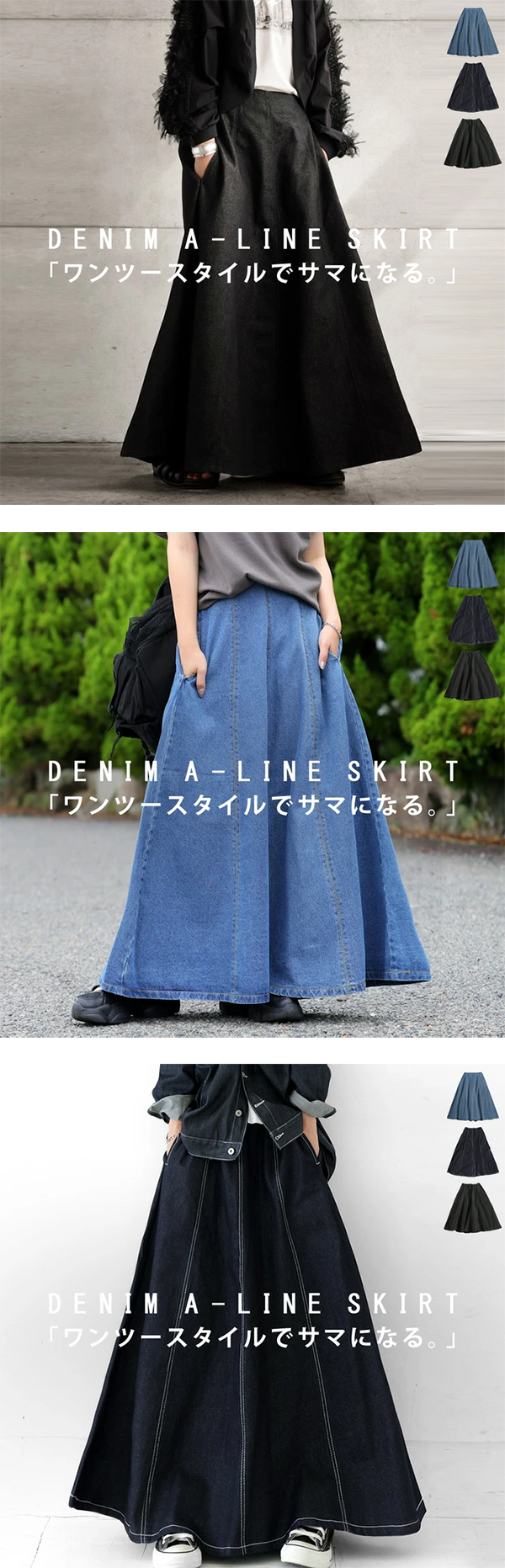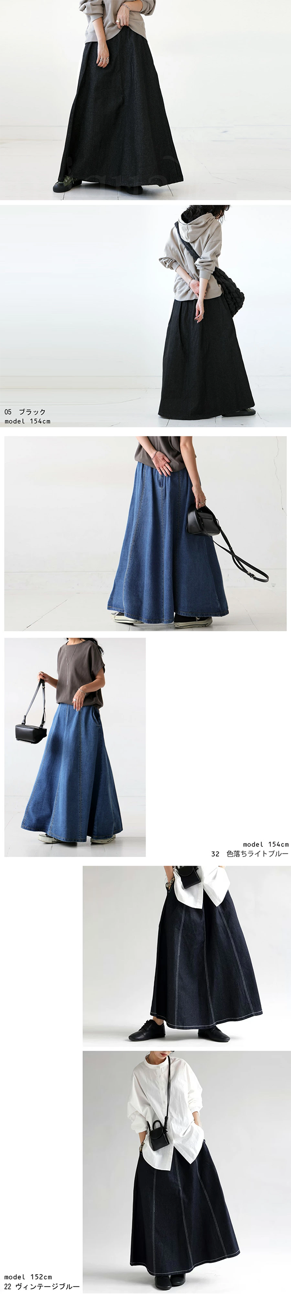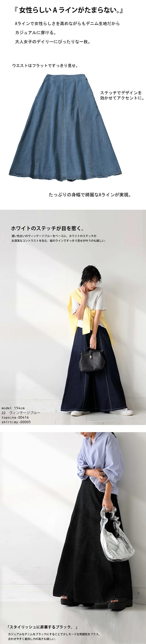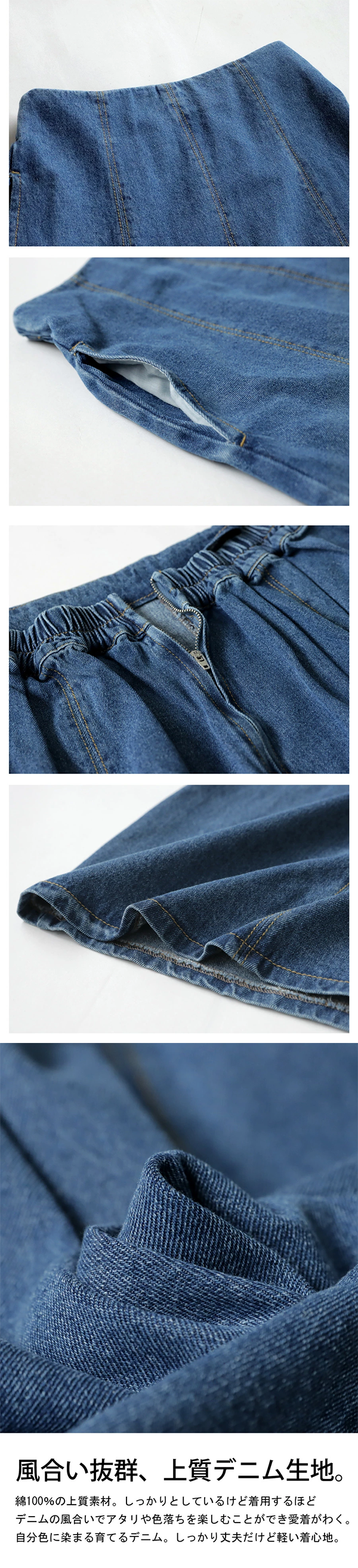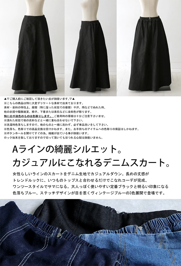 レディース Aライン デニム フレアスカート ロング 92cm丈 バックファスナー