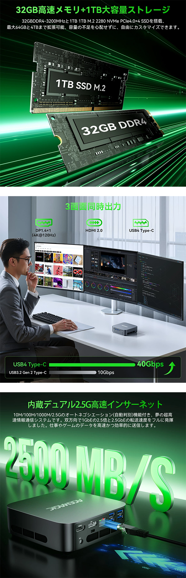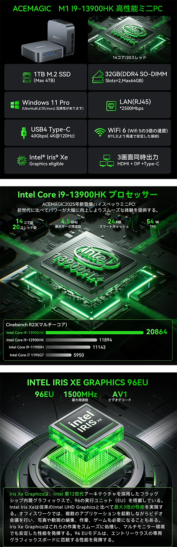▶ Amazonのサイト: ACEMAGIC mini pc M1 13900HK メモリ 32GB SSD 1TB ミニパソコン HDMI2.1×2/全機能Type-C 4K120Hz 3画面同時出力