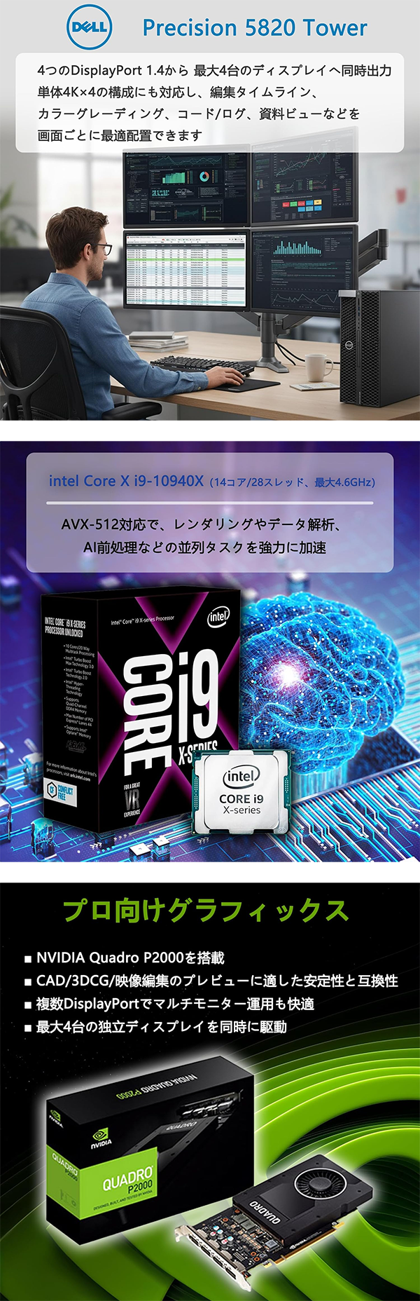 ▶ 楽天市場のサイト: 中古 デスクトップパソコン PC デル Dell Precision 5820 Tower 10世代 Core i9-10940X GPU NVIDIA Quadro P2000 Windows11