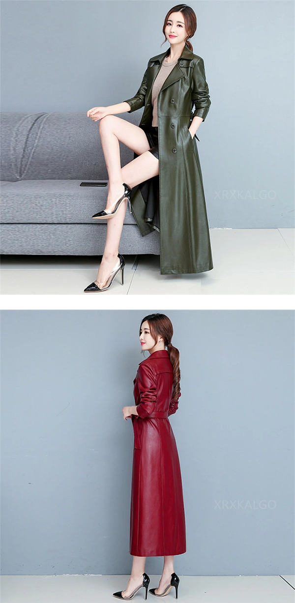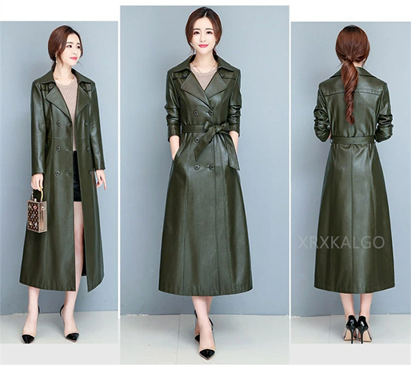▶ 楽天市場のサイト: レディース レザー 本革 トレンチ コート ダブル ロング 6つ釦