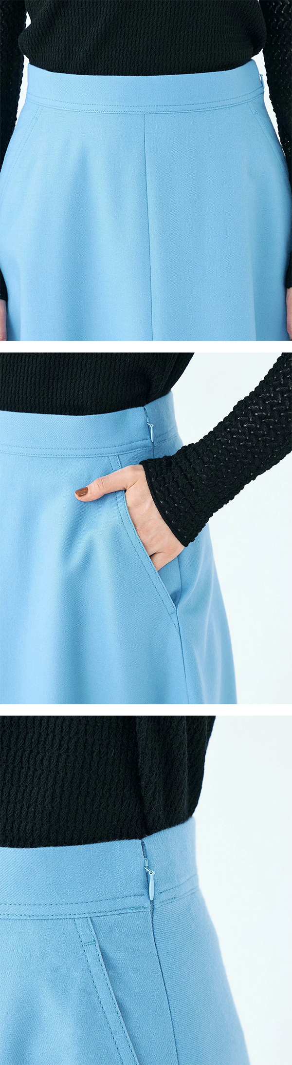• ウエストまわりをすっきりと作り、よりメリハリのあるシルエットを生み出しています。