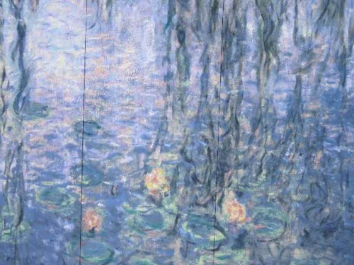 大塚国際美術館の「大睡蓮」では、モネが晩年、手を加えて描き続けられた睡蓮が屋外で展示されていて、 風と光の中で鑑賞することができます。1000年先まで色褪せることはないようです。すごいですね。。作品を囲む庭園では、少し小さめの青とピンクの睡蓮が、太陽の光で輝いていて綺麗でした 可愛いメダカがお花のすぐそばで泳いでました