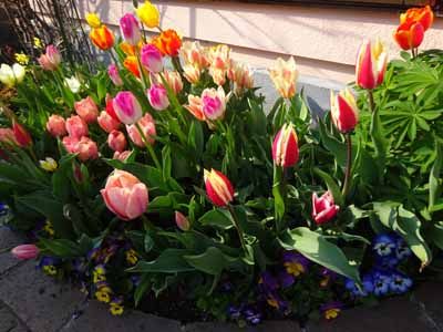 チューリップが今日のお天気でずいぶん鮮やかです。