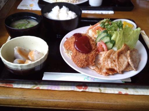 岡山出張も、そろそろ佳境に近づいて来ました。今年一杯で、全体の仕事の半分くらいが終了します。でも、本番は年が変わってからになります。来年2012年は、海外向けの仕事になります。当然、海外へ行って立会等、確認の作業があるのですが、私は、飛行機が大の苦手なので、おそらく他の営業の人に、代わりに行ってもらおうと思っています。飛行機も、乗ってしまえばどうって事は無いのですが、離陸から、機体が浮き上がるまでと、空港に到着して、着陸するまでが、とても気持ち悪い感じがします。飛行機には、そう何回も乗ったことは無いのですが、いつ乗っても、この気持ちは解消することは無いですよね。いつもの喫茶店で、いつもの日替わりランチです。いつものように、相変わらずのボリューム感は、何となく気持ちをホッとさせますね。