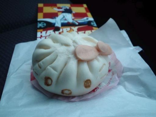 ハローキティが中華まんになって登場しました。具は、隠し味に細かくカットしたリンゴを混ぜ込んだカスタードクリームです。台紙には「サンリオハッピー占い」として数種類の占い結果がかわいいデザインとともに記入されています。私は、『中ハッピー』でした。昨年に出された、ドラゴンクエストの『スライムまん』は、その姿さえ見ることが出来ませんでしたが、このキティーまんは、そこまでの人気は無いようです。値段は、1個150円なので、リンゴ入りのカスタードのクオリティーは今一と言った感じでしょうか。サラリーマンの、いい年のおやじが、ハローキティーまんをレジで注文するには、やや勇気がいりました。ちなみに、販売しているのは、サークルKサンクスです。