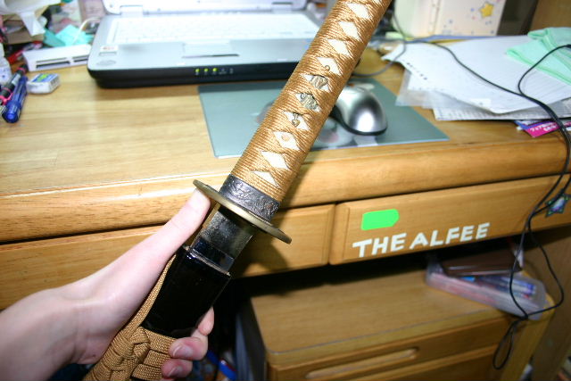 今から仇討ちに行って参ります。。。 なんていうのは冗談です(ノ ̄∀ ̄)ノ ビックリした~?(笑) これ父さんに貰った模造刀なんです♪ (それも小学生時代に(ぉ) なんか刀を見てると落ち着くんですよね~( ̄ー ̄) (何コイツ恐っ(^^;) 久しぶりに押入れから出して眺めてます♪ 今の私の一番の敵は 紛れも無く精神の弱い自分自身 だと思ってます。。。。 詳しくは分かりませんが・・・ 我が家は大昔、刀を預かってたらしく・・・ 理由があって取りに戻りに来なかった人も居て、 本物の刀もあるんです(^^; 父から聞いて「へぇ~(・・)」と思ってましたが、 この歳になって初めて、実際にそれを見ました。 誰かが「刀を所有するには資格が要る」と言ってましたが、 なるほど、刀に証明書が付いてました。。。 「へぇ~~・・・これがそうなんや。。。(・・)」 とマジマジ見てた山崎 遵でした。 しかし、まぁ、元々他人の所有してた刀ってなんか 不気味ですよね(^^;