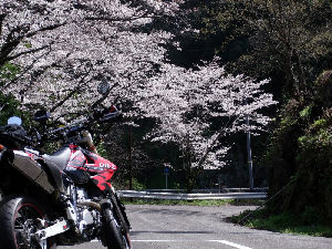 先週の土曜日にバイクが戻ってきたので、2ヶ月ぶりのツーリングへ出発テーマは毎年恒例となった桜と石橋との...ツーリング日の出と共にDR-Z400SMのエンジンに火を入れて高速に乗る。ただ、マフラー、エアークリーナー、イリジウム点火プラグを交換してキャブ調整の効果抜群エンジンからの振動は消え、体に伝わる振動は排気音と同じタイミングに変わり、アクセルを捻るとそのまま加速していきます。普段、のんびりと走る私にはハイペースに、直ぐに気力に耐え切れず。 いつもの巡航速度に戻って松橋ICで降りる。 松橋ICからは高千穂方面へと北上する国道218号へこの国道218号沿いは江戸時代に作られた石橋が数多く、通潤橋、霊台橋、大窪橋などがある。森に埋もれていたりするので、石橋を宝探しのように巡るのも面白いかな?途中、萩尾大ため池の鯉のぼりをみたり、なにかの学校?の入口にある駐車場では、桜が綺麗だったのでしばしの休息人手も少ないので、無粋なカードレールを隠すために桜の下にバイクを止める。ツーリング目的地の大窪橋は、個人的には半分になった一心行の大桜よりも、江戸時代に作られた石橋と桜のコンビネーションが大好き。再び、走り出して霊台橋の先にあるダムに寄ったり、菜の花と桜のある風景が良かったりすると、路肩に止めてさらに1枚。また、この季節は道路沿いに咲いている桜並木や菜の花が綺麗なのでバイクを走らせながら眺める風景も格別。たまに道路沿いのお店でつまみ食いしたり、交通の邪魔にならないように路肩に止まって休憩したり通潤橋を越えてからは南阿蘇へと国道265号へと進路を変える高森峠から麓までの旧道を一方通行にした千本桜が有名で、ここから見える阿蘇内輪山の山々や野焼きの煙など。。。。眺めていると、時間が止まったように感じてしまう。 ただ、残念なことに、高森千本桜や高森温泉館の桜は芽吹いて頂けだったので通過する。 残念。渋滞を避けて裏道を走って大観峰へと走り始める。 峠では瞬発力がよくなったので、車が路肩に避けてくれて、対向車がいないときは、 アクセル一発でグングンと抜いていく。 譲って頂いたので、お礼を兼ねて手を振るのは忘れない。ミルクロード手前で、観光バスを先頭にした自然渋滞に巻き込まれるまでは、いつもと違って楽しかった。大観峰では手前の舗装していない駐車場で、阿蘇をバックに写真を撮ってから売店で買い物をして休憩再び走り出してワイタファームロードへ。 南小国から大分・玖珠方面へと遠ざかるように走って岡本豆腐店付近からのパターンが多いが、ゆっくり走る車も多く遠回りなので、下城の大銀杏付近から山へと走り、草原の中の一軒屋のようなレストランからワイタファームロードに入って、走り出す。 熊本県と大分県の県境からファームロードは日田スカイファームロードと呼び名が変わる。日田で、隠れた桜のスポット。。。大野の大しだれ桜の下にバイクを止めて写真を撮ろうと立ち寄る桜のある公園と逆方向なので、桜は綺麗なんですが、ここまで訪れる人は少なかったのですが、数日前にTVに紹介された事もあって人だらけ。 TVの影響力に驚く。その後は山を抜けて福岡方面へ