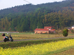 天気予報が午後から雨で、しかも嵐と自身ありげにいうので 小市民の私は、90%(昨日の段階)という数字に負けてしまい。本日は阿蘇ツーをあきらめて、山口ツーしてきました。 それも、嵐になっても良いように、アドレスに乗り換える。※おもいっきり振り回せる原付も楽しいということもあり。風は強いが、本当にほんと。 雨は降るのかな?と思ってしまう、極上天気 しかも春の陽気で暖かいなか、海を越え、山口に上陸。朝の通勤時間帯?につかまり、渋滞に巻き込まれるが。 アクセルを全開にして、車の流れを乱さずに走れるぐらいハイペース(ノ<)下関市街地を抜けると、 陽射に暖められて、温泉のように田んぼから湯気がのぼり 風景は水墨画のように変わる。ダムを越えて、直線が気持ちの良い道路にでると ずし~んと、身を切るような寒さに襲われながら、菊池道の駅へここから、少し山手に向かい。 菜の花や水仙に囲まれた田んぼ道を走り、歌野川のダムへ このダムは湖畔沿いに、彼岸桜とそめい吉野が植えられていて、 早咲きの彼岸桜が満開でした。
