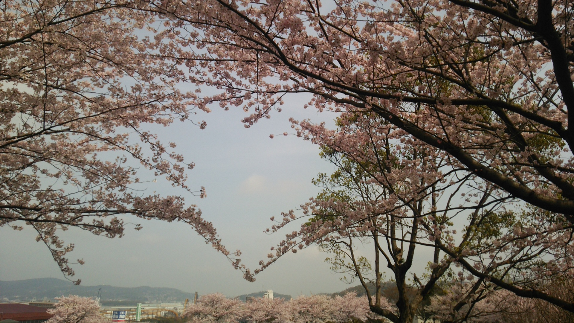 花見に公園に来ました。 公園から見える桜の花 あれ? 桜と桜の空間 ハートマークに見えませんか?