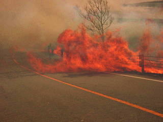 -----◇-----◇-----◇-----◇-----◇-----◇-----閉鎖したHPより、20年前のブログ記事より-----◇-----◇-----◇-----◇-----◇-----◇----この光景は阿蘇の自然と人の共存の象徴で、草原を守るために代々受け継がれてきた伝統にゃ。バイクで春の阿蘇を駆け抜けていると、黒く染まった野焼きの地が広がり、その独特な風景に思わず心を奪われてしまいますにゃん。フリー走行中に偶然、野焼きの雰囲気が漂う場所に出会ったので、思わずバイクを停めて撮影を始めたにゃ。春風が「こんにちは」と吹き抜ける中、目の前には炎の力を借りた春の精霊が舞い踊るような光景が広がっていたにゃ。龍のような姿をした精霊が楽しそうに炎の中を踊り、私の周りを横切っていった瞬間、その場に何とも言えない神秘的な感覚が漂ったんだにゃ。それはまるで、阿蘇の自然が優しく語りかけてくれるような、不思議な安心感と力強さを感じるひとときだったにゃん。この野焼きは草原の再生を促し、新しい命を呼び込む大切な役割を果たしているにゃ。古い草や枯れ葉を焼き払うことで、土壌が豊かになり、新しい草花が息吹く準備が整うにゃん。地元の人々が長年守り続けてきたこの文化は、草原が広がる阿蘇ならではの美しい伝統だにゃ。撮影した場所は、ヤマナミハイウェイやミルクロードの近辺、そして南阿蘇のらくだ山付近だったにゃ。春風とともに走るこのルートは、阿蘇の大自然を五感で楽しむのにぴったりにゃん。野焼きの黒い大地と空に漂う煙、そこに差し込む柔らかな日差しが、阿蘇ならではの独特な春の風景を作り上げているにゃ。そして、燃え広がる炎を目にしながら思いを馳せるのは、人と自然が共に生きるための知恵と調和だにゃ。野焼きを終えた後の草原は、次の季節に向けて新しい命が芽吹く場所になるにゃ。そんなサイクルの中に身を置くと、大地に根ざした何か大きな力に守られているような安心感を感じられるにゃん。阿蘇の春を象徴する野焼き、この光景に触れたときの感動をぜひたくさんの人と共有したいにゃ。バイクや車でのんびりと阿蘇を巡り、自然の息吹を感じてほしいにゃん。<<<<注意>>>>>バイクで走っていると、野焼きの炎が道路を渡り始めたので、煙や火に巻き込まれないように安全を考えて路肩に停車したにゃん。道路走行が安全になると思うまで待っていたにゃ。 写真はその待ち時間に撮影したにゃんね。阿蘇の春の野焼きの伝統行事を撮影したい場合は、安全を第一に考えてにゃ。この写真を撮影した時に、道路の先で野焼きを撮影していたおじさんが炎に巻き込まれそうになった場面も目撃したにゃん。なぜ?近くで撮影しているのと思ったけど、大事に至らなくてよかったにゃ。でも、怪我すると自分だけでなく大勢の方々に迷惑をかけるので、注意してにゃんね。#阿蘇の野焼き #安全第一 #伝統行事 #春の風景 #撮影の注意点 #熊本観光 #自然との共存 #望遠撮影