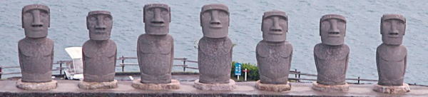 このサンメッセ日南は、レプリカとは言え、イースター島以外ではここだけというモアイ像は、資料によると倒壊したままのモアイ像を(株)タダノ+αが修復の奉仕をした事の感謝と、個々の施設を作った創始者が弟子関係だったという理由からここに復元されたそうです。