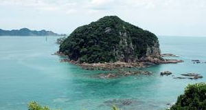 鳥居を過ぎて現世との別れを意味するのか、これから先は聖域という意味なのか赤い小さな橋を渡る頃は、水平線が目に飛び込んで来た。 綺麗な海だ!!