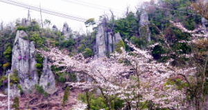 ここは道路脇に桜が咲いて、竹の子のように岩がにゅきにょきと生えてきたような感のあって大好きな道である。