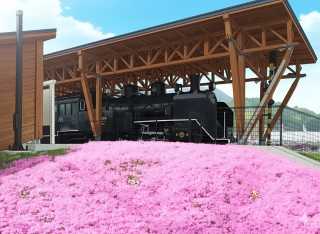黒いSLの重厚さと、ピンク色の芝桜の可憐さが、とっても素敵なコントラストだったにゃ。