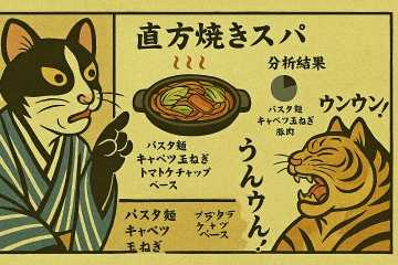 にゃんこたちの心を揺さぶる、直方焼きスパ。食べれば食べるほど、にゃんこの足がステップを踏み出すにゃ。