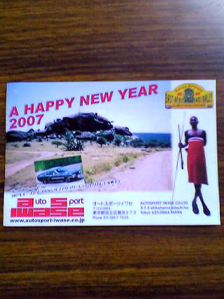 黒70がお付き合いさせて頂いている『オートスポーツイワセ』さんから、今年も年賀状WRCでは知らない人はいないほどのプロドライバーさん。今年はイーストアフリカンサファリラリーに参戦するそうです応援行きたいけど、行けるわけないですねイワセさんからは、黒70、ボディー剛性に関して、いろいろと教えていただいたことばかり、世界を相手にするラリー車のボディーの作りかたは桁違いの技術と溶接ノウハウです。ボディーをホワイトボディー(ボディーだけの状態)にして前後を吊り上げ、スポット溶接と補強板を溶接しているのを見たときは黒70も、あ然ここまでラリー車って剛性が必要なんだ~って感動でしたね。とてもマネできませんとにかく世界で戦う技術は凄いの一言です。