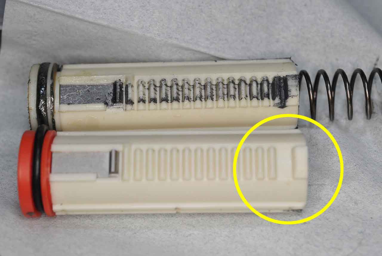 新品には最初から歯の一部が無いですね。(黄色丸印)