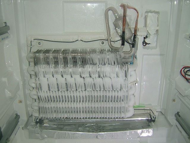日曜日の朝のんびり布団の中・・・・何しようかななんて考え中携帯が鳴った、「Ωさん休みの日にごめんなさい、冷蔵庫が点滅しているの大丈夫かしら」昨日のお客さんで明日の予定いれていたが、心配そうなので「差し支えなければ今から伺いますけど、ご都合はいかがですか?」「せっかくの休みにすみません」「いや、大丈夫ですから」 どうせ家にいてもグウタラしているだけだろうから、今日やっておくと明日は気が楽だし・・・ 到着後冷蔵庫ばらして、エバにはりついた氷、とかしてチャチャっと交換して組み直して完了・ 木曜日に開けた時の状態、ドライヤ―当て始め、一旦止めて撮影(上部はぴっちり詰まっていた) 今日はこの状態、これならもう少し踏ん張れって、もう一日くらいは冷えていると思う・「もう大丈夫です」と一言、この一言でお客さんは安心して使うことが出来る、そして帰り際に必ず一言「もし、おかしいと思ったらすぐに電話ください、飛んできますから」と保険かけておく・・ 99% 大丈夫でも1%のアクシデントも考慮しておかなきゃいけない・