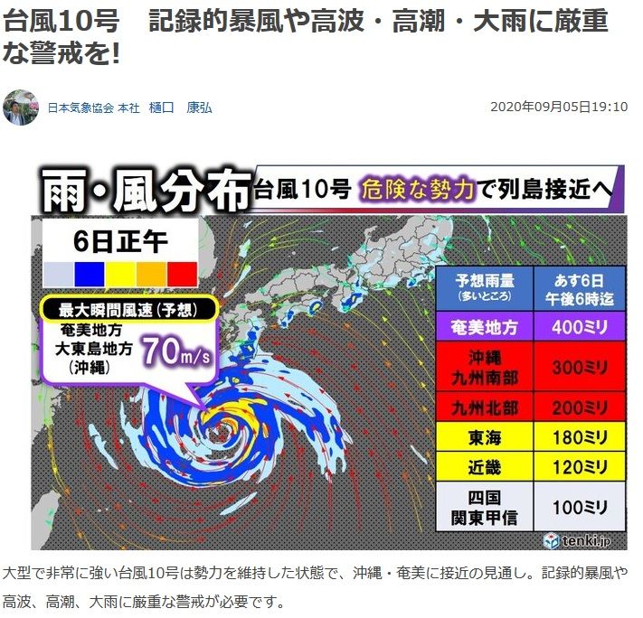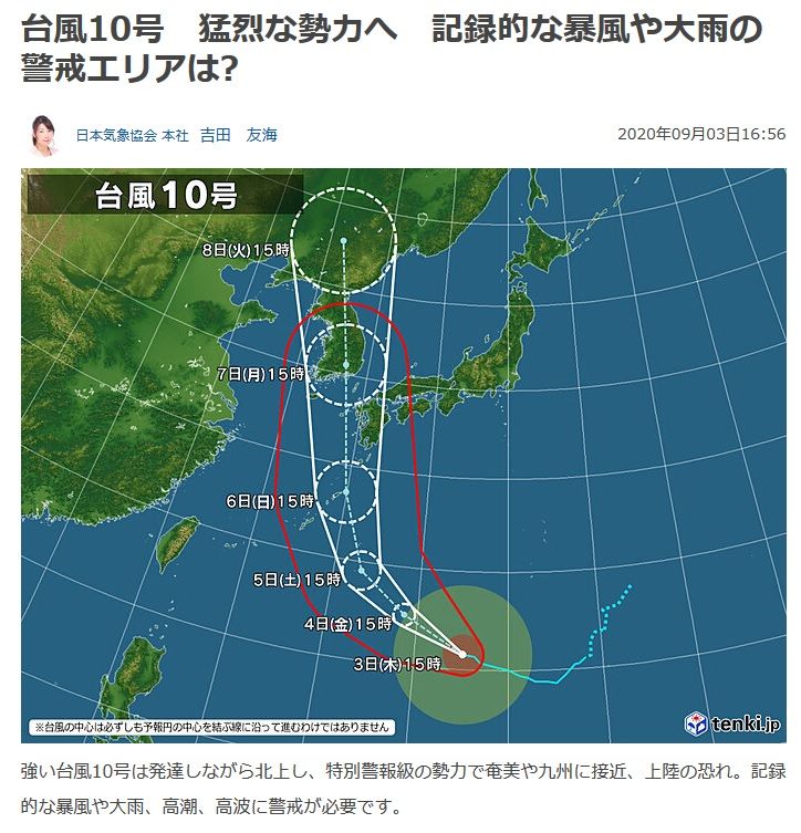 昨日、10号は反れているようなので気が緩んでいると言ったが、その言葉撤回する間違ったら直撃するコースになっている、それも9号より中心気圧が低い、という事は勢力が大きく被害が甚大なことになるという予想が出来る・・ コロナで弱って大変な時期にこういう自然災害で追い打ち掛けられたら・・・今日は台風で車庫のシャッターが開閉トラブルの処理からスタート・・もちろん治してきた アパートの共聴アンテナ交換作業 ある意味台風の特需みたいなもんだが、正直全く有り難くない、アパートの共聴工事なんかは高所作業で台風の余波で風にあおられながらの工事なのだ、アンテナの包装箱も風にあおられて飛ばされそうになるのを必死に畳んで飛ばないように注意しながらの作業である意味命がけだ。