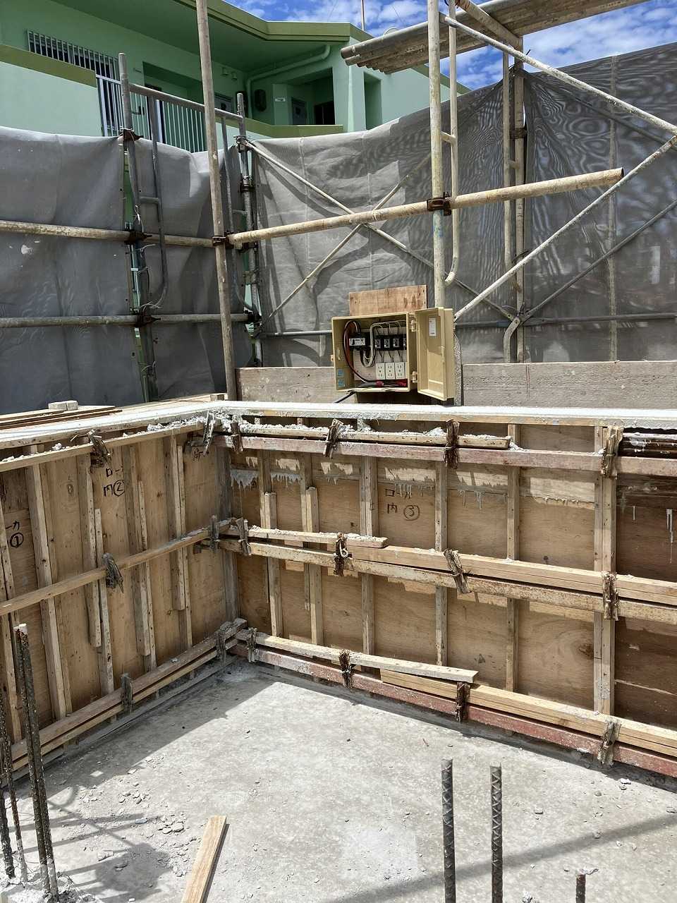 翌日土曜日には墨出しするので、電源のウォルボックス設置へ1階に6回路1台 三階に4回路1台設置、この建物4階建ての建物なのでとりあえず1階3階で間に合わせる事にする、今回のスラブは2階天井なので、残すはあと2回スラブ打ちが待っているのだが 今回が1番の難所だった 引き込み配管が2か所あった・