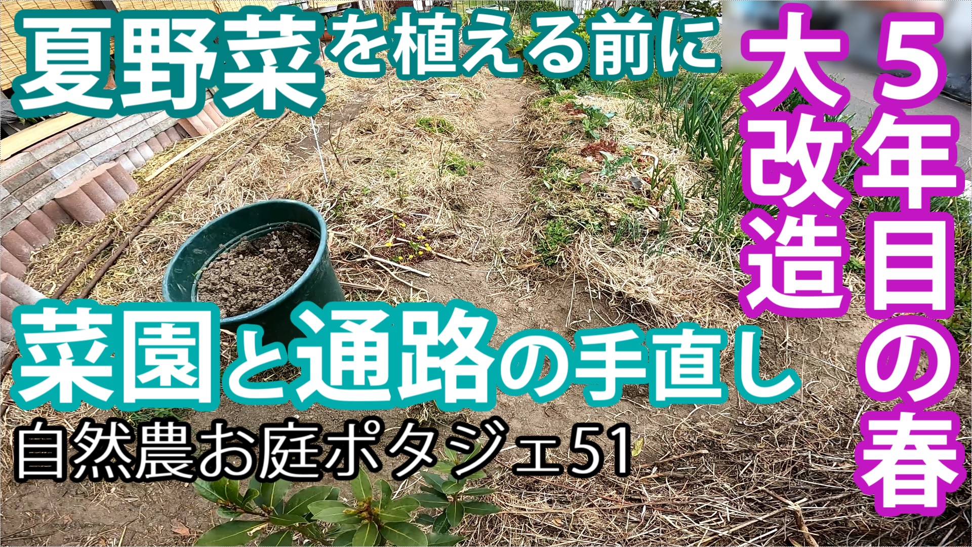 YouTube動画公開いたしました♪大改造5年目を迎える今年の春は、菜園、草花や果樹コーナーの輪郭がくっきりとしてきました。お庭ポタジェでは、グリーンカーテン用のサツマイモ、いんげん、ゴーヤ、そして夏野菜などを植えられるよう作業をしております。