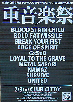 これ↓は行きますよ~。チケット買ってきました。【重音楽祭】国内の、メタル/ハードコア/ラウド系バンド 10組が来年 2月3日(日)川崎クラブチッタに大集結チケット代は何と!1,980円という破格なお値段いやー、こうこなくっちゃいけません!この心意気がステキだw公式サイト私はとにかく、BLOOD STAIN CHILDが見たいのよッ!あー、その前に、まだニューアルバム買ってなかったので買わねば(爆これだよね?↓【送料無料選択可!】モザイク / BLOOD STAIN CHILD曲はこんな感じ↓BLOOD STAIN CHILD -FREEDOM-ますますトランス・テクノ色が強くなって、パラパラメロデス?wみたいですがいいねぇー。いいよ、いいよーw アゲアゲ早くゲットせねば。デスメタルバンドのGxSxDもヨサゲ。旦那はやっぱりユナイテッド出演決定でワーキャー騒いでおりますネ